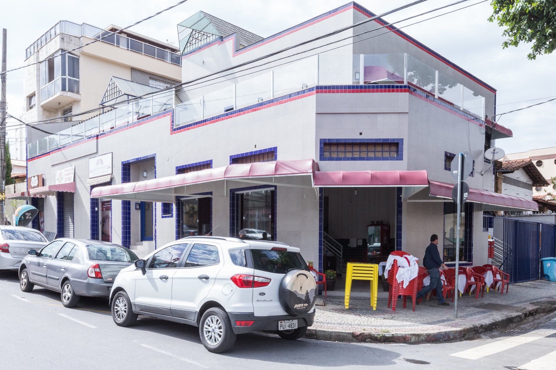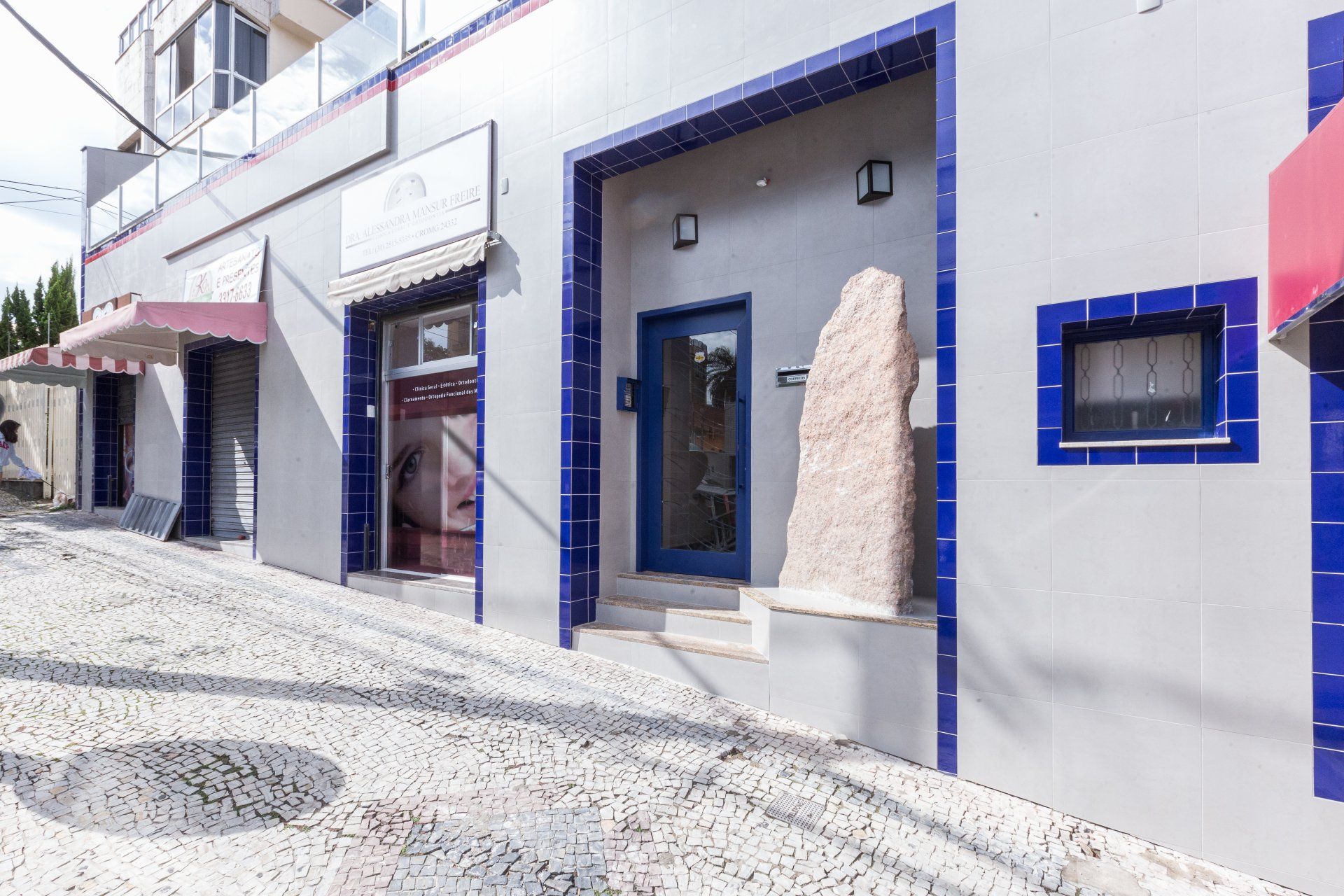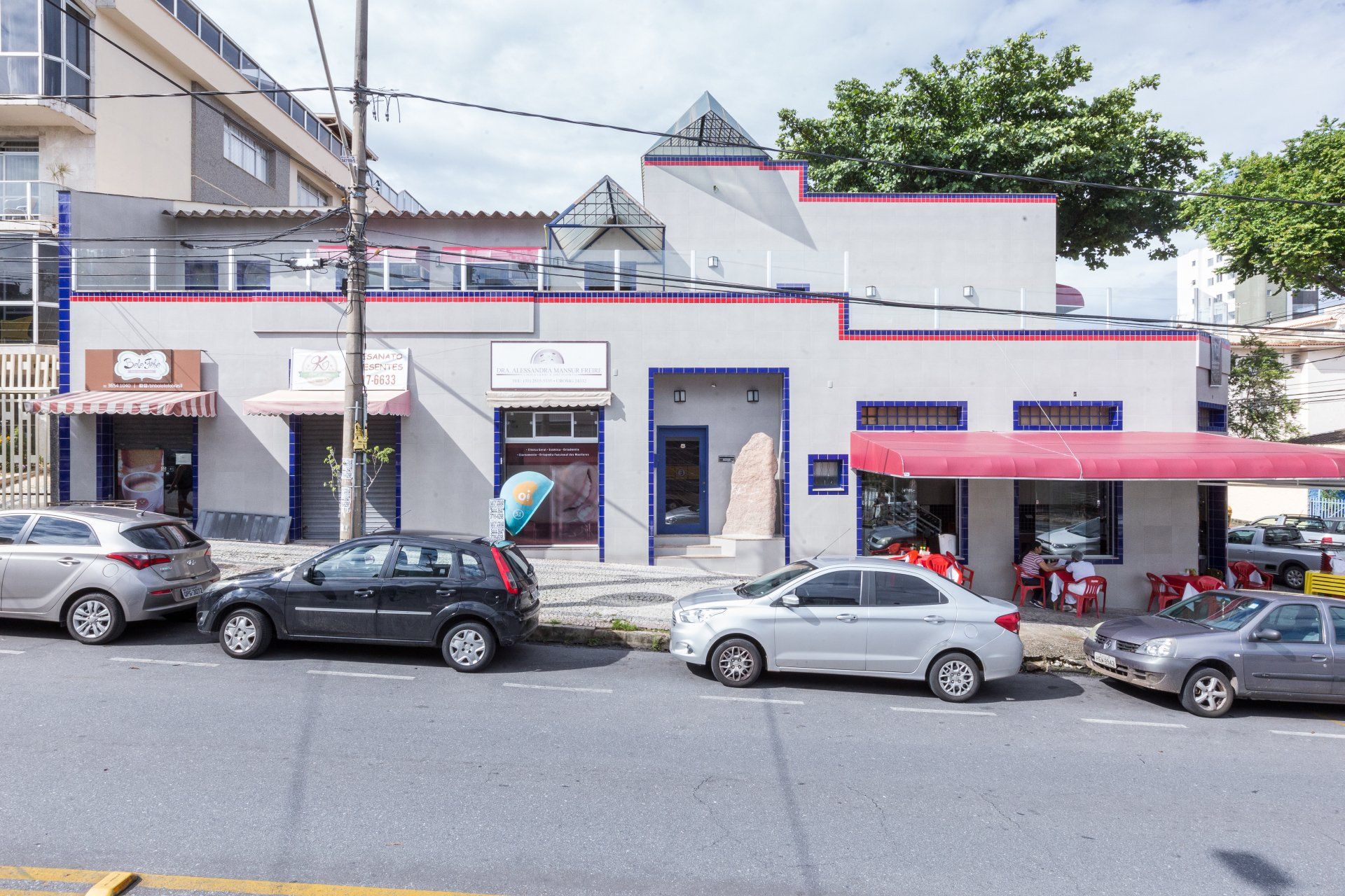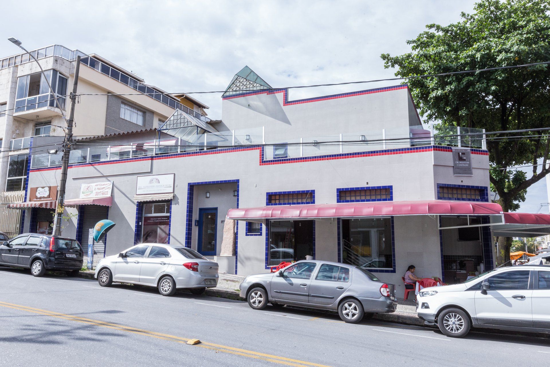 Edificação que apresentava diversos problemas de infiltração e fachada com deslocamento de revestimento. Problemas solucionados mantendo a lógica visual existente preconizada pela cliente, mas com uma modernização estética.