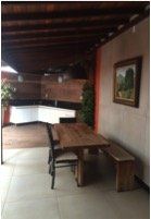 Este trabalho, que compreende projeto e obra, proporcionou uma ambientação verde e aconchegante através dos jardins verticais, uso da madeira e a cor alaranjada para destacar ainda mais o verde do paisagismo. Além disso, a cliente solicitou um espaço de ateliê para produção de artesanato. De uma área fria e sem uso para transformar-se em um ambiente de descanso, acolhedor e que inspira o trabalho de artesanato desenvolvido pela cliente.