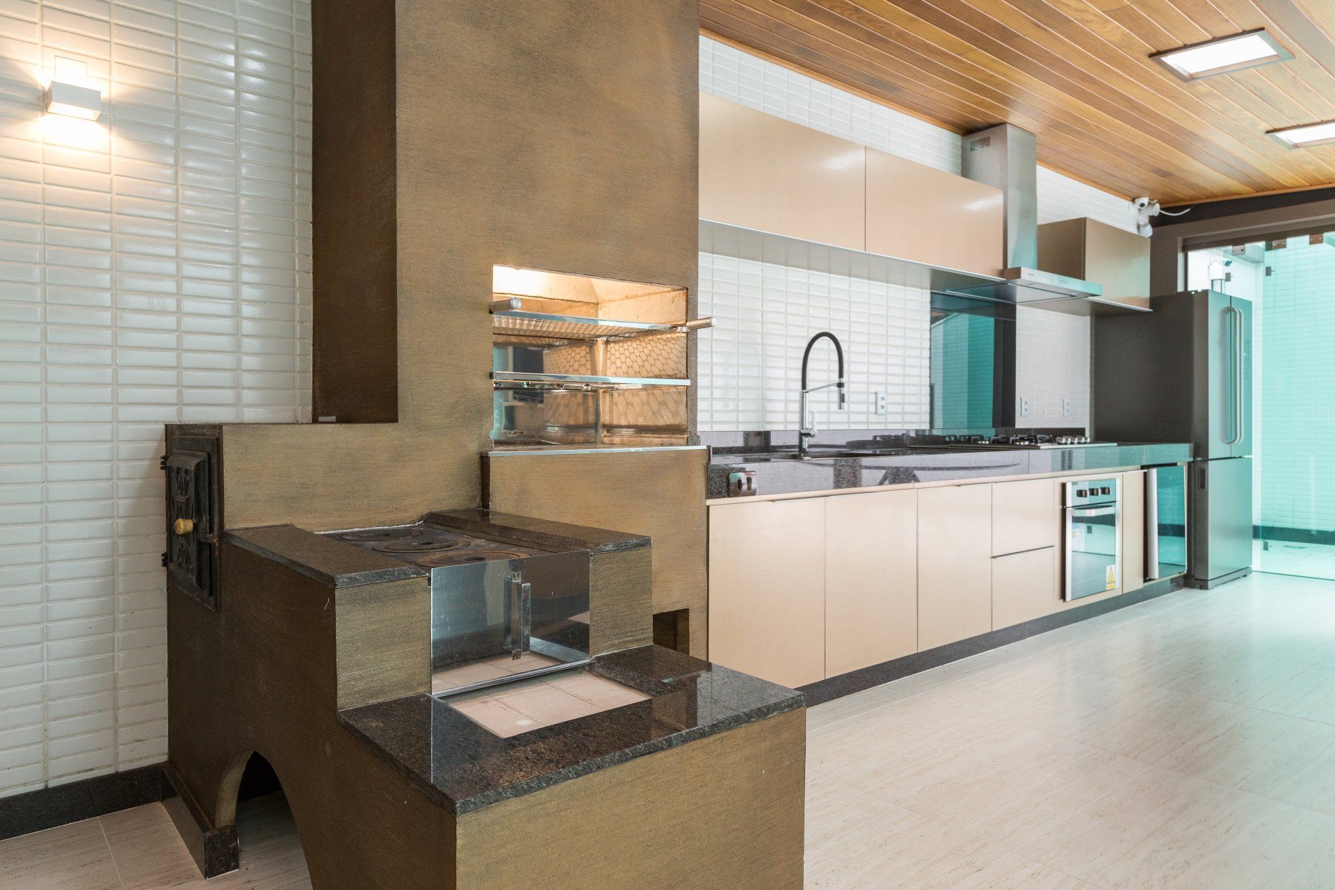 Área gourmet projetada executada pela C&L Arquitetura e Construção. Espaço contemporâneo sem perder o toque de aconchego e uma leveza rústica.